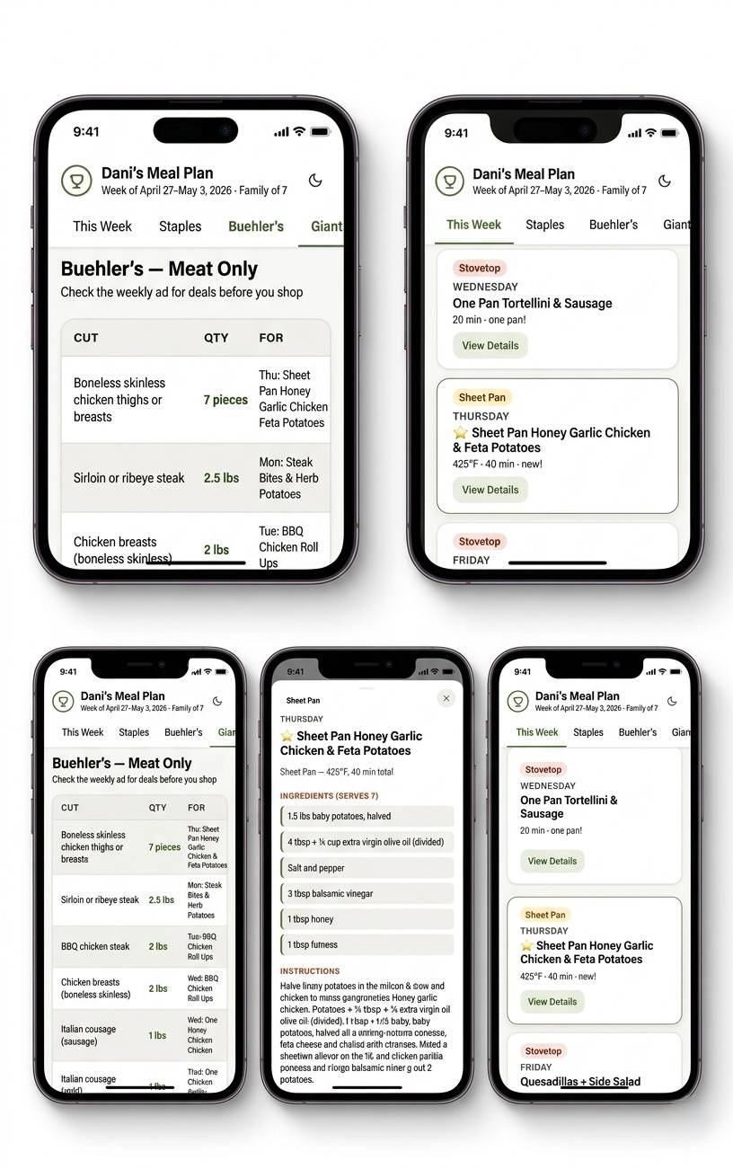 Not just a list of links. Real context: what our family eats, how we shop, what our budget is, what Tuesday actually looks like, etc.
